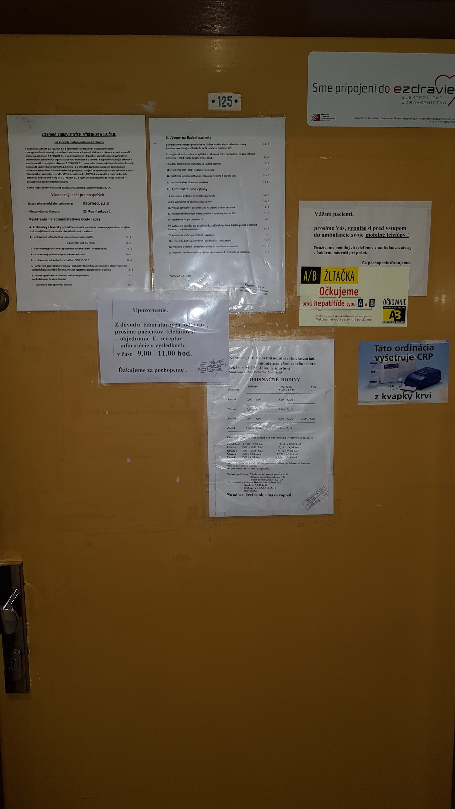 7,00 - 9,30 - bezinfekčná- čistá ambulanica pre odbery,