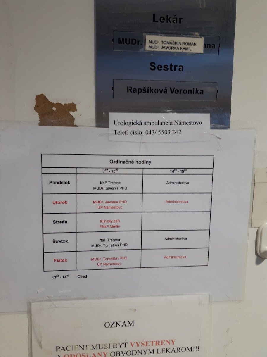 Vynikajuci lekár, len to cakanie na vysetrenie je velmi dlhe, od rana 06,00 som sa dostal na vysetrenie o 09,00 hod, je tam velmi vela pacientov. Na foto su ordinacne hodiny aj s tel. cislom.