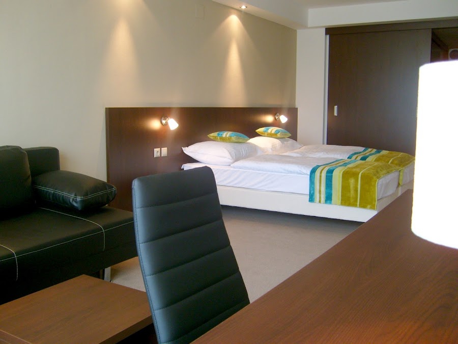 Hotel fajn, troška ďalej od centra, prijemne prostredie, disko 80r. vždy v piatok, poobede otvorený bar a veľa služieb pre zdravie. Dojem trocha zhorší župan za dvojku - mohol by byť v štandardnej výbave keď riešia Wellness, masaže a rôzne procedúry, plastové poháre v kúpeľni akoby 100x použité, prázdna chladnička na izbe. Inak celkovo OK, kľud, požičiavajú bicykle, fitnes, odporúčam.