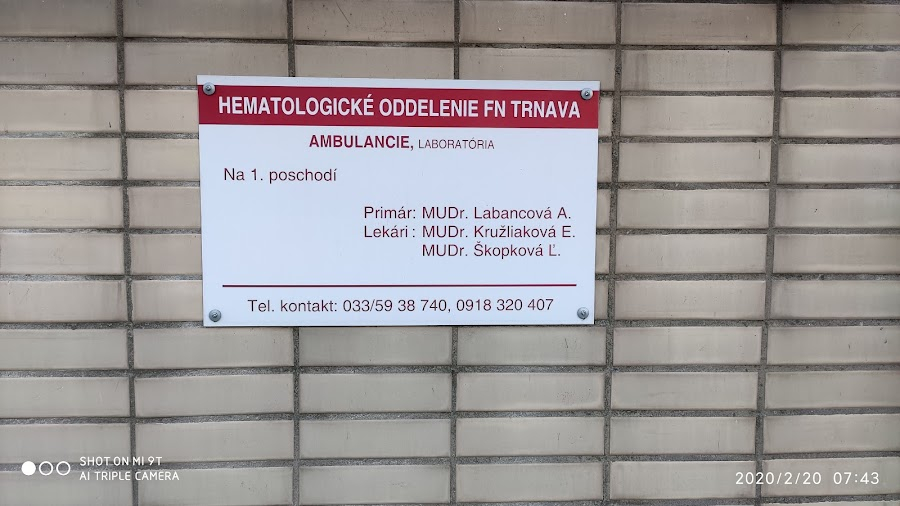 - úsek darcov krvi (evidencia darcov, ambulancia darcov krvi, odberový box, hemaferézy)