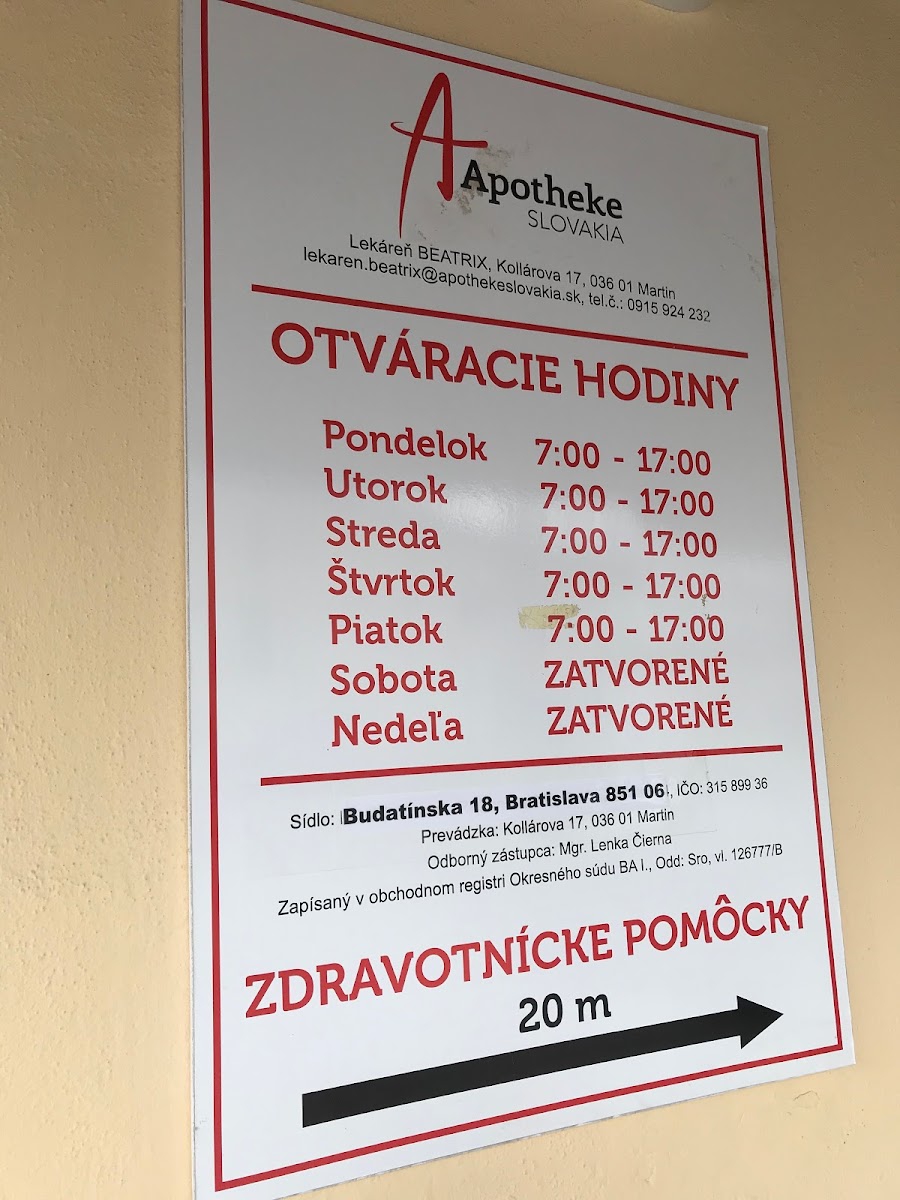 Vždy ochotný personál, či už ide o osobný kontakt, telefonický alebo elektronický. Objednajú, vybavia, zavolajú. Som spokojná. Vždy majú dobrý sortiment homeopatík, môžem sa spoľahnúť, že ked niečo narýchlo potrebujem, tam to zoženiem. Pri prevádzke je možnosť bezplatného parkovania, čo je super, len povrch by potreboval spevnenie. V prípade nepriaznivého počasia človek vystúpi z auta rovno do blata.